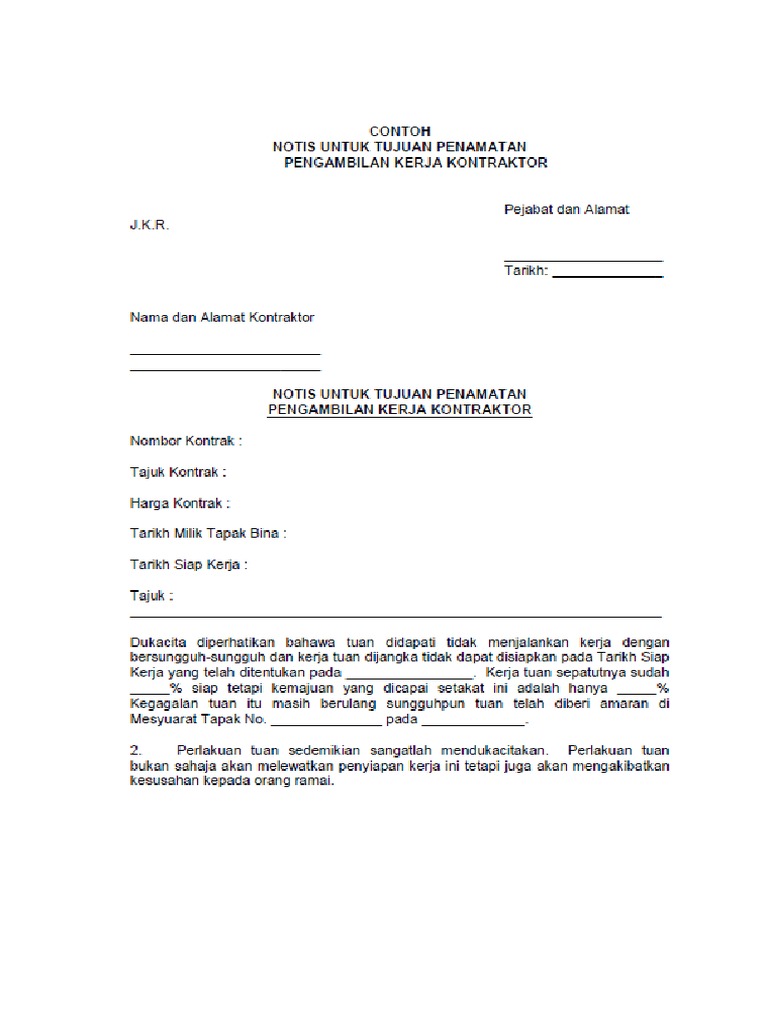 Penamatan Pelantikan Kontraktor. Termasuk kenaan cukai. Iv Bagi mendapat kemudahan bayaran pendahuluan.