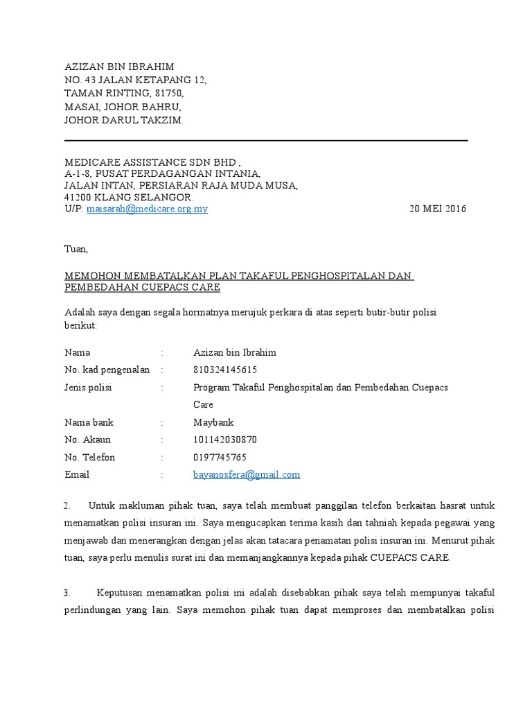 Surat Pembatalan Insuran Takadul Nutp Pdf